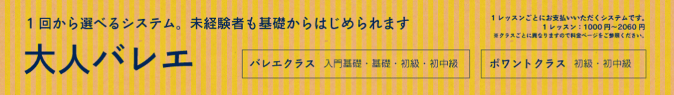 ■入門・基礎バレエクラス  金曜日:12:45~13:45  1,500円/回
