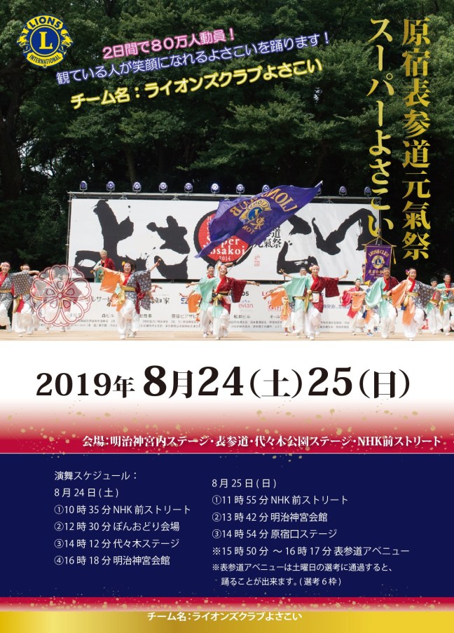 8月24日(土)25日(日)原宿表参道元氣祭スーパーよさこいに出演 投稿日: 2019/08/102019/08/10 投稿者: NPO AVA 特定非営利活動法人アヴァ ドレミファダンスコンサート 松浦理事長、メンバーの春日、飯田、細田、松居、左近、金城、他40名、8月24日(土)・25日(日)、原宿表参道でよさこいを踊ります。立ち寄った際は、是非、応援を宜しくお願い致します!